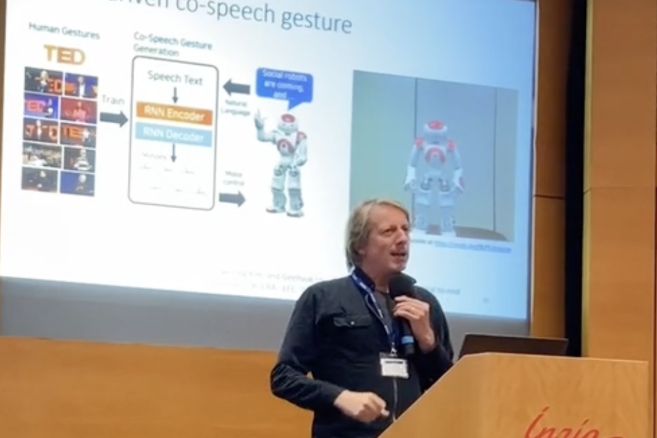Tony Belpaeme, Professor at Ghent University, introduced VALAWAI concepts in the 1st International Symposium on Humans at the Centre of HRI, Grenoble, France.